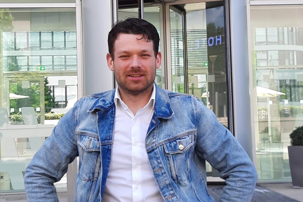 Aleksander Sadowski vor der VDI-Zentrale in Düsseldorf