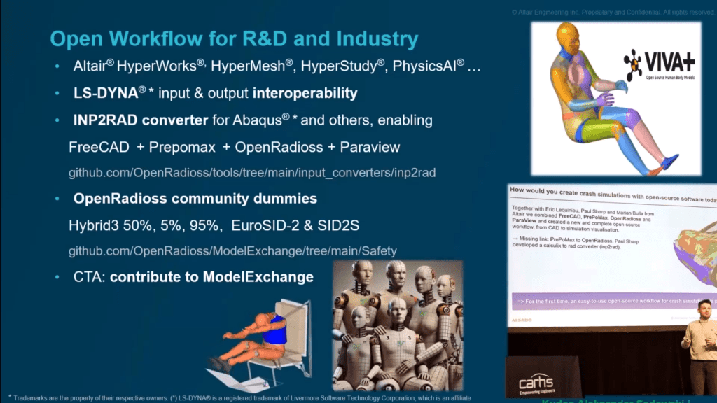 Altair stellt Forschungs- und Entwicklungspartner beim OpenRadioss Users‘ Day 2025 vor und erwähnt Alsado als Software Zulieferer