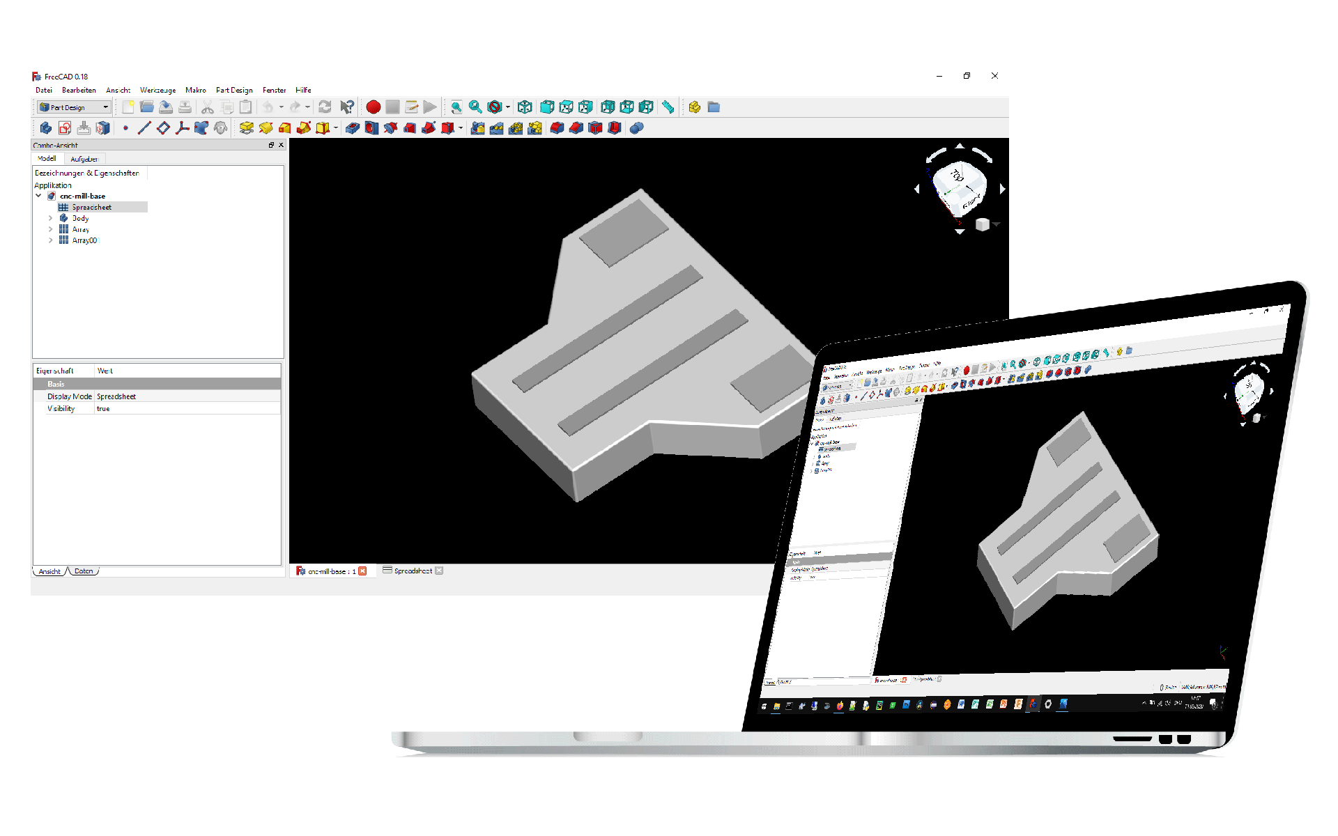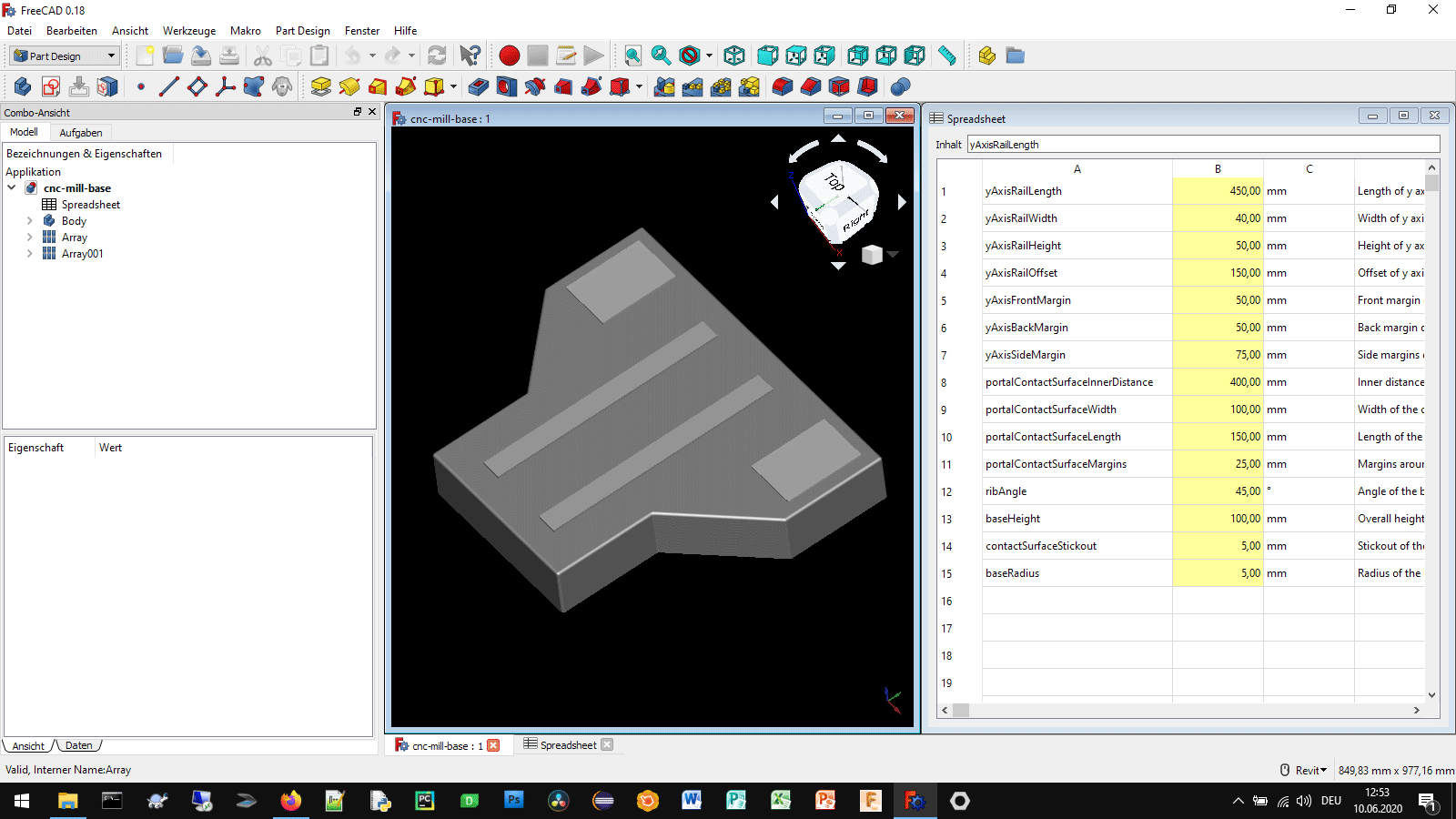 Zur Verwendung des FreeCAD Konfigurators „Harzbeton Maschinenbett“ wird die kostenlose open-source CAD Software „FreeCAD“ und das Addon Makro „FCInfo“ benötigt. FreeCAD herunterladen