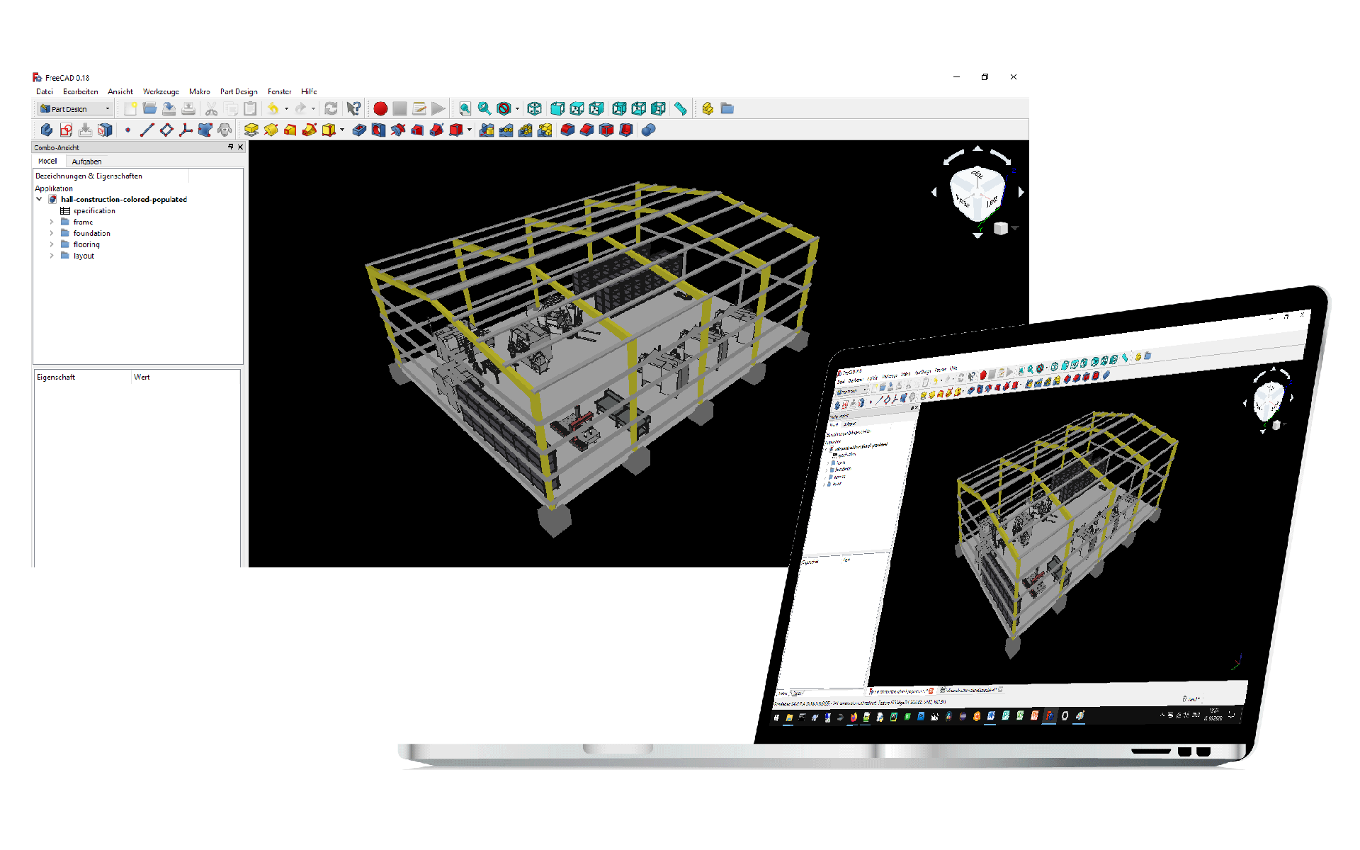 Zur Verwendung des FreeCAD Konfigurators „Produktionshalle“ wird die kostenlose open-source CAD Software „FreeCAD“ benötigt. FreeCAD herunterladen