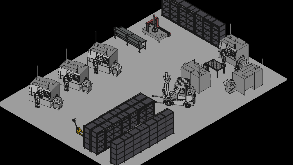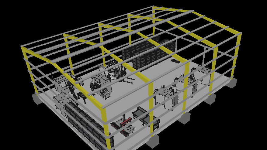 Der FreeCAD Konfigurator „Produktionshalle“ wurde erstellt, um ein digitales Layout einer Produktionshalle mit Maschinen erstellen zu können. Dadurch kann die Position der Maschinen erst digital enworfen werden.