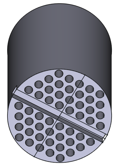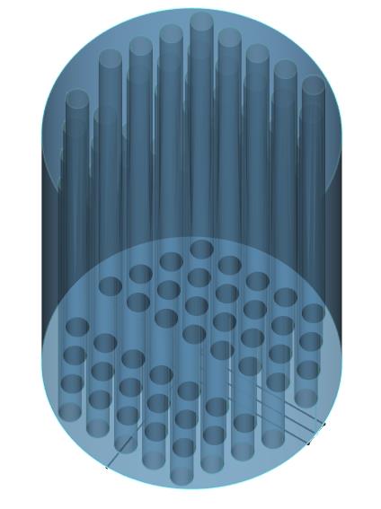 Das Rohr wurde in FreeCAD konstruiert. Insgesamt wurden 56 Rohre im Mantel angeordnet.
