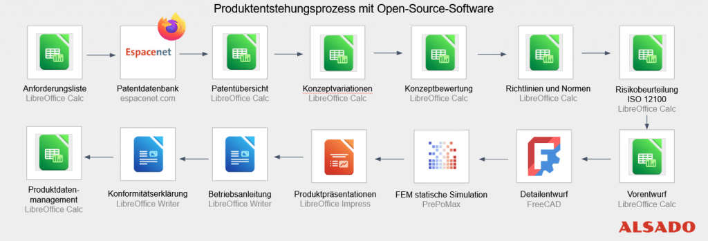 Um dem entgegenzuwirken, zeigen wir, wie der Produktentstehungsprozess im Deutschen Maschinenbau mit seinen wichtigsten Schritten mittels Open-Source-Software umgesetzt werden kann. Durch Open-Source-Software wird die Einstiegshürde wie nie zuvor für Maschinenbau-Startups gesenkt und so Innovationen gefördert. Etablierte KMUs können durch die Unabhängigkeit langfristig planen und eigene Entwicklungswerkzeuge, basierend auf Open-Source-Software aufbauen. Darüber hinaus werden durch den Einsatz von Open-Source-Software hochqualifizierte Fachkräfte angezogen, weil sich diese oft in der Freizeit damit befassen.