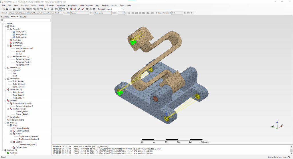Abbildung 10: Aufsetzen eines FEM-Berechnungs-Fallstudie für ein Mars-Rover Fahrwerk aus Kunststoff mit PrePoMax